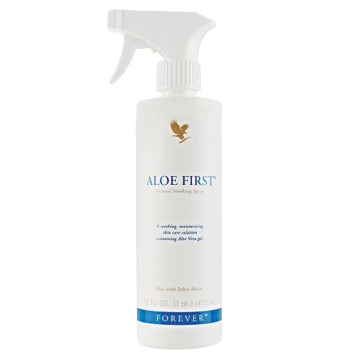 Aloe First® es una adición perfecta a su botiquín de primeros auxilios. Esta exclusiva fórmula calmante para la piel está hecha con gel estabilizado de aloe vera de nuestros campos de aloe. Aloe First® también contiene propóleos de abeja y una mezcla patentada de once potentes extractos de plantas. Simplemente rocíe sobre su piel para sentir un calmante alivio.