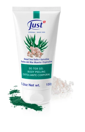 Una exquisita combinación de sales del Mar Muerto, espirulina y nutritivos aceites vegetales se ponen en acción para devolverle la apariencia fresca y saludable a la piel opaca y deslucida.