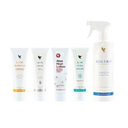Combinamos el poder calmante e hidratante del Aloe First Lotion, Aloe Propolis Creme y Aloe Vera Gelly junto con el poder recuperador y aliviador del Aloe MSM Gel y Aloe Heat Lotion.