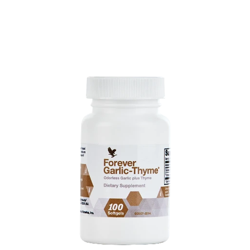 Forever Garlic-Thyme® presenta el súper dúo de nutrición de la naturaleza. El ajo apoya la salud cardiovascular porque contiene compuestos beneficiosos que promueven la circulación sana. Cuando el ajo se corta o se tritura, las enzimas reaccionan para producir un poderoso agente que aumenta la inmunidad. ¡Con Forever Garlic-Thyme® usted obtiene todos los beneficios de 1.000 mg. de ajo!